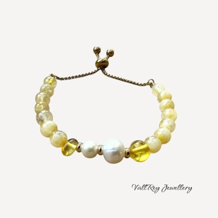 Дамска гривна от цитрин с перла и кехлибар