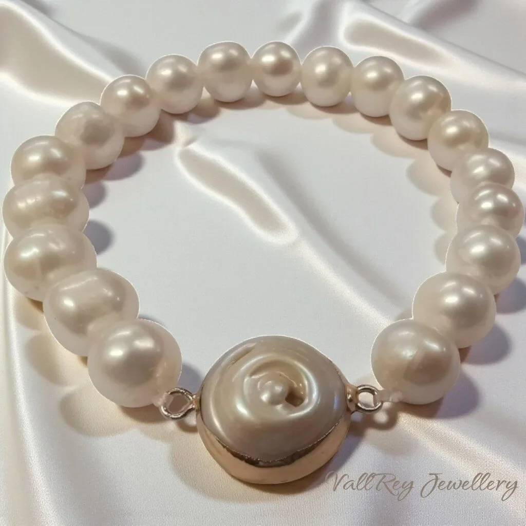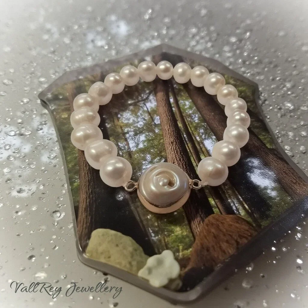 Гривна от бели перли е ръчно изработена гривна от естествени речни перли, нанизана на ластик.