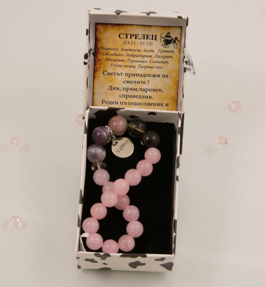 Ръчно изработена гривна за зодия стрелец от естествени камъни с фирмено стоманено лого VallRey