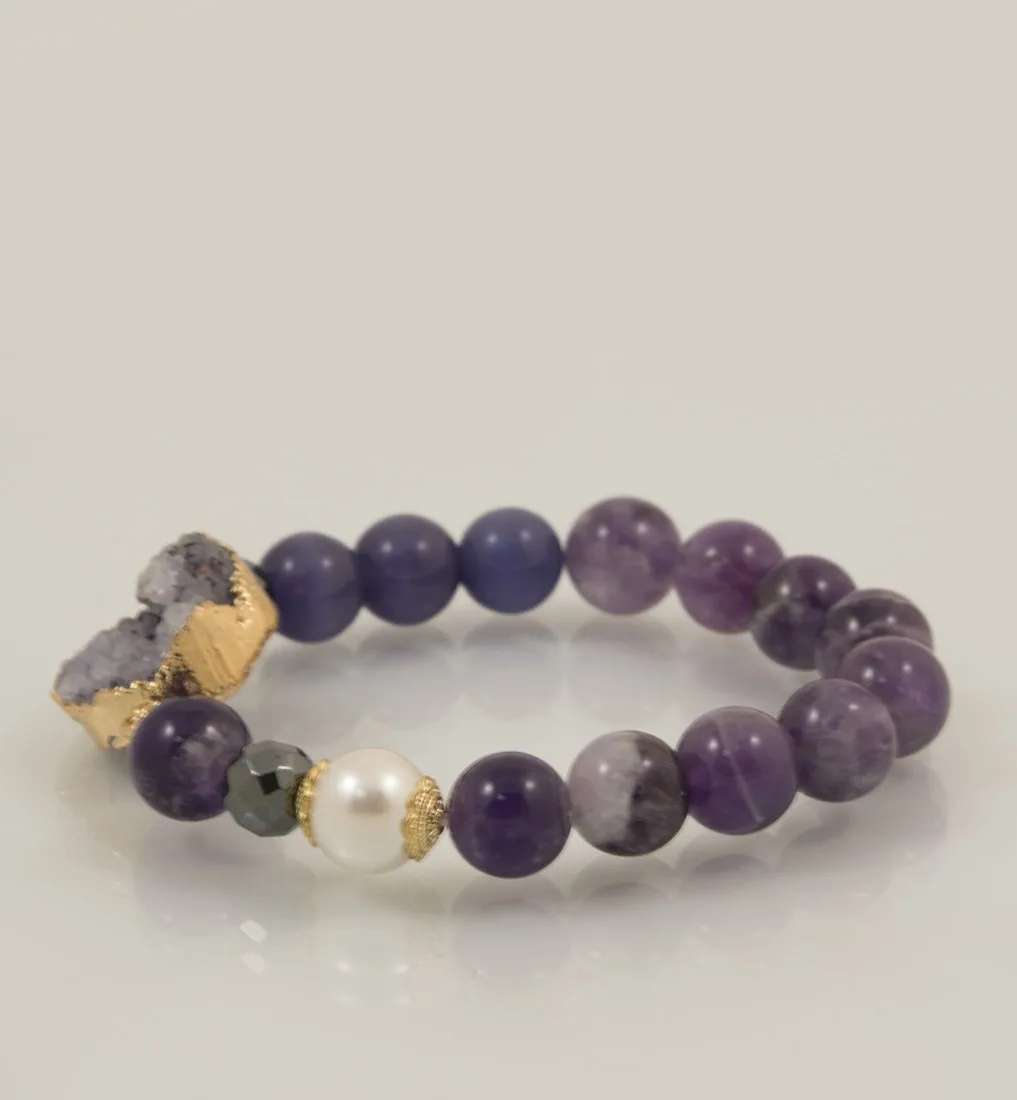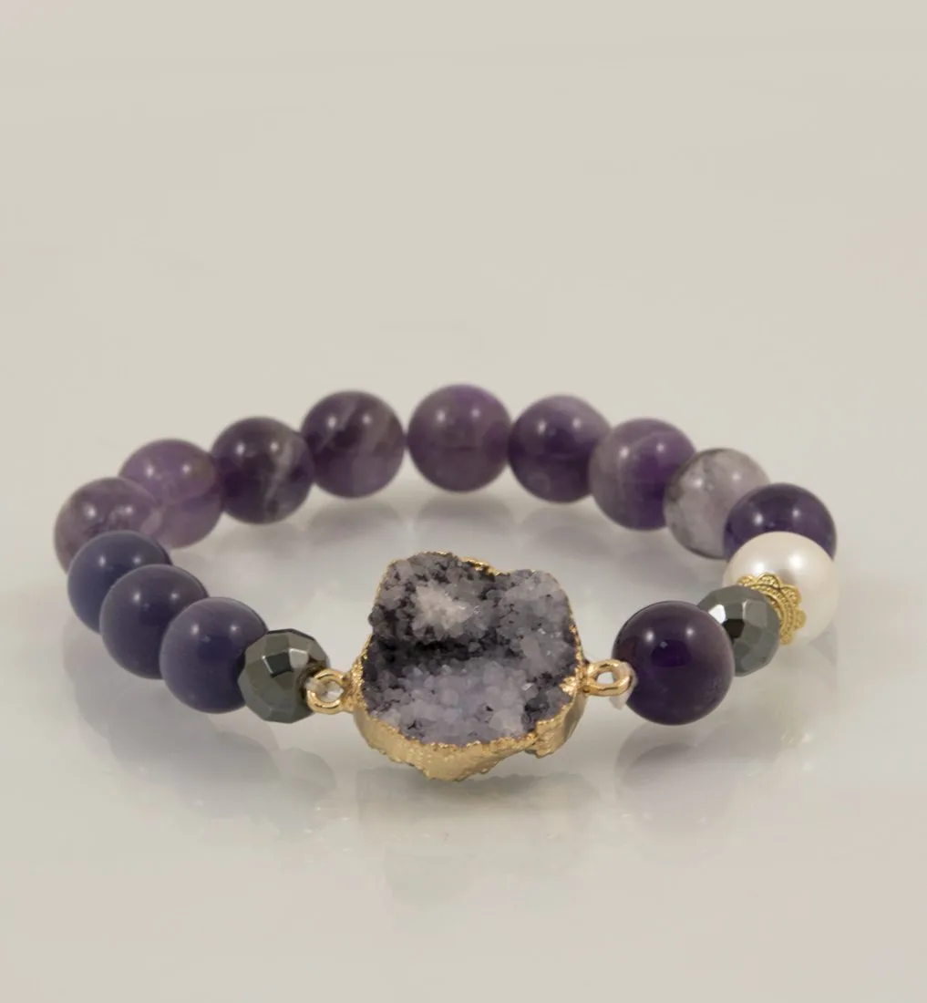 Ръчно изработена гривна от естествени камъни, перла , друза и хипоалергични елементи.