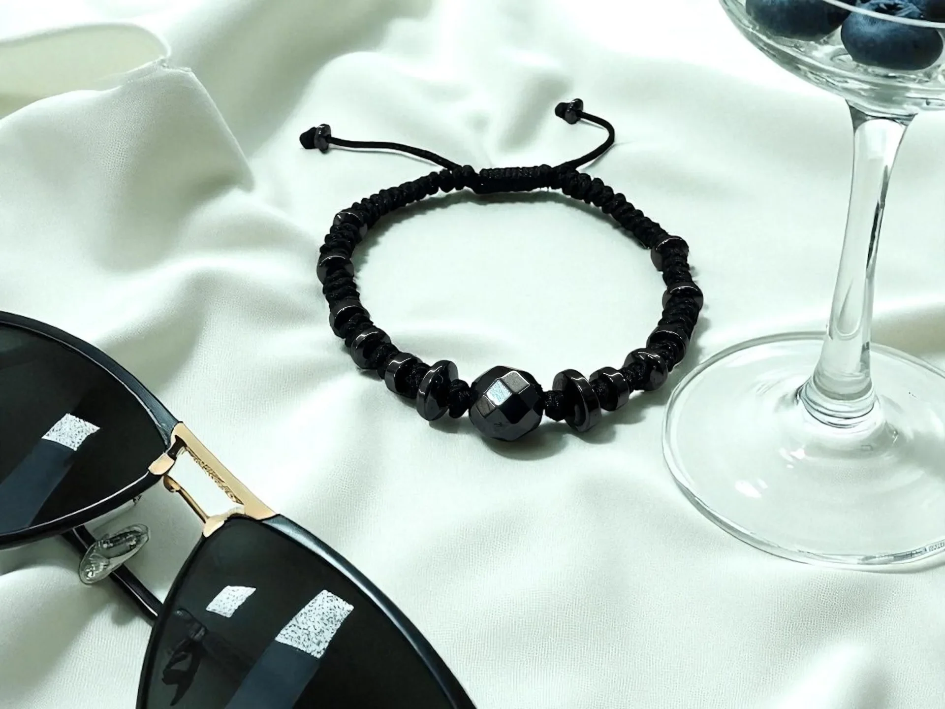 Мъжка гривна, изцяло изплетена на тибетски възел, който носи послание за баланс и непрекъсната връзка. В гривната са вплетени 6 мм и 8 мм метални шайби, както и 10 мм фасетирано хематитено топче за финален акцент. Гривната е регулируема – благодарение на плъзгащия се възел, тя може да се настройва от около 18 см до 23 см, за да прилегне идеално на всяка китка.