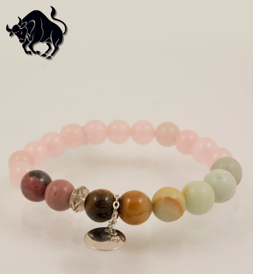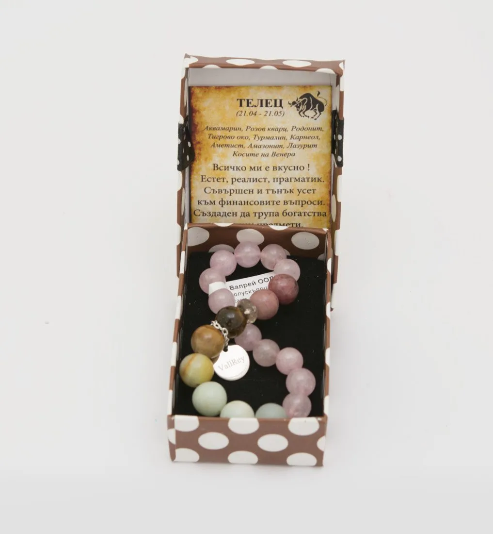 Ръчно изработена гривна от естествени камъни с фирмено стоманено лого VallRey