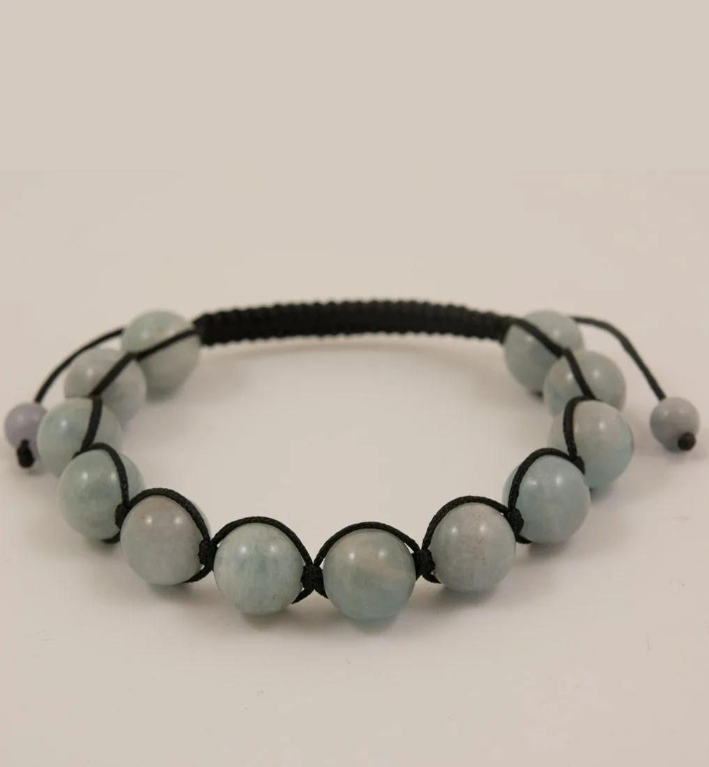 Красива гривна шамбала от полускъпоценен камък – аквамарин за дамите