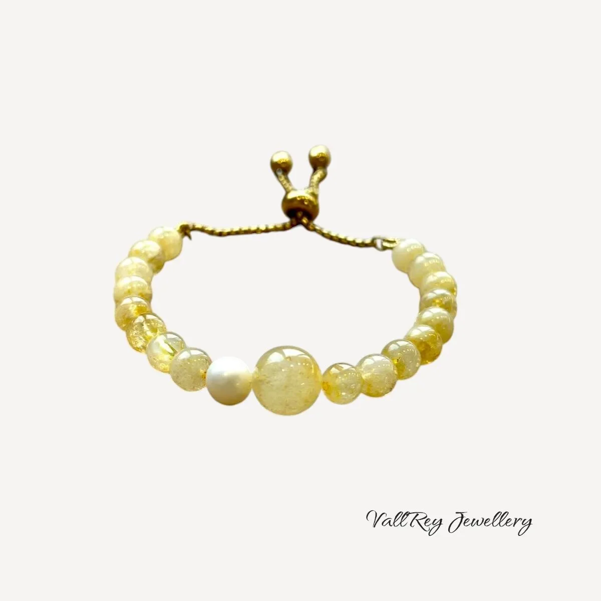 Комбинацията между цитрин и перла обединява активната слънчева енергия и спокойната, балансираща сила. Резултатът е гривна с усещане за лекота, естествена красота и тиха увереност.