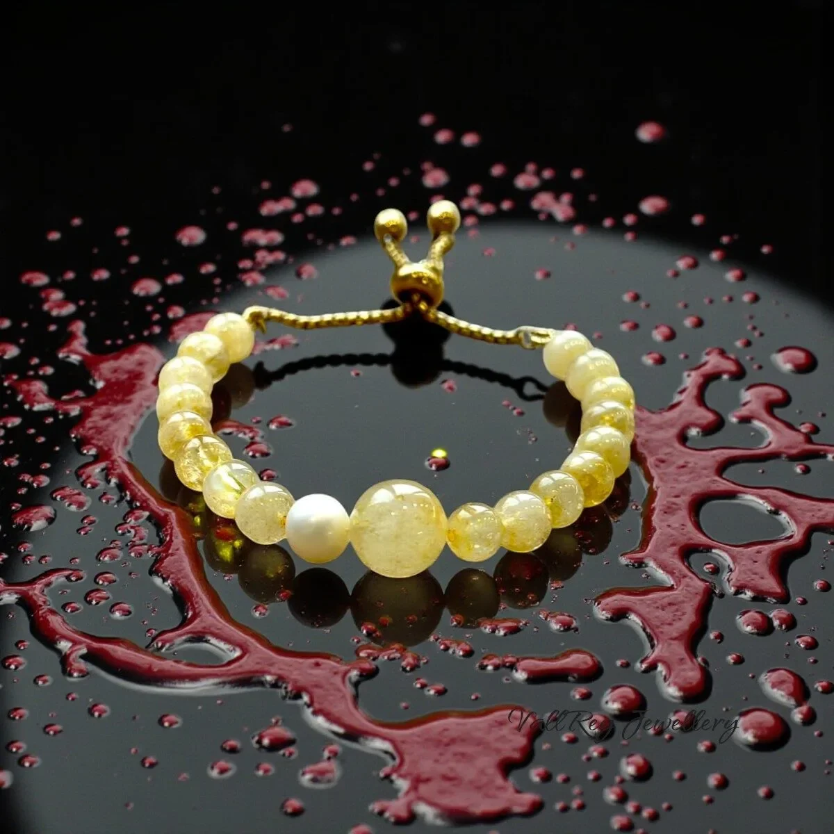 Тази дамска гривна е вдъхновена от спокойната сила на женствеността и естествения ритъм на природата. Съчетанието на цитрин и перла създава бижу с меко излъчване и хармонична енергия – изискано, ненатрапчиво и изпълнено със смисъл.