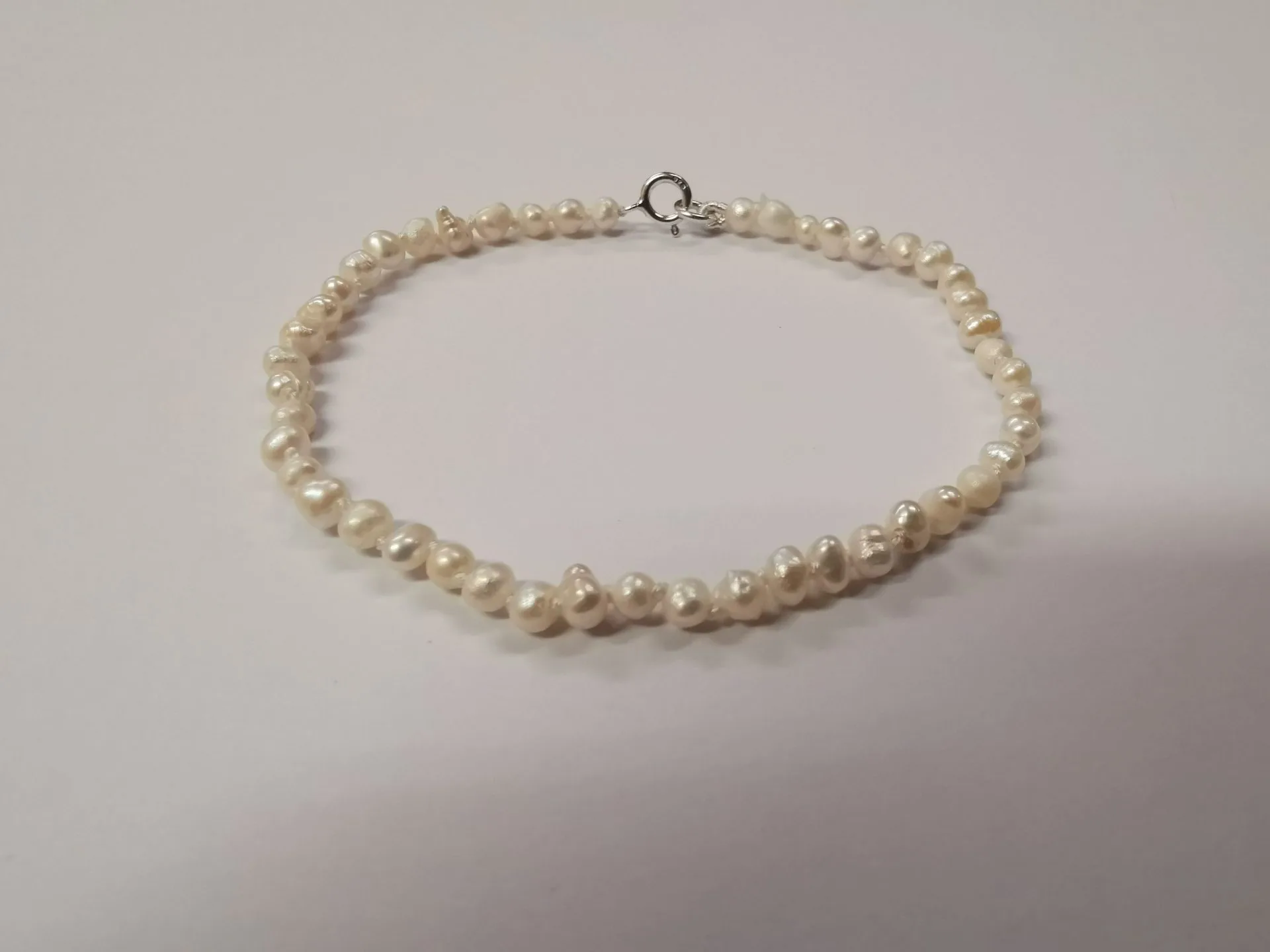 Гривна от бели оризови перли: