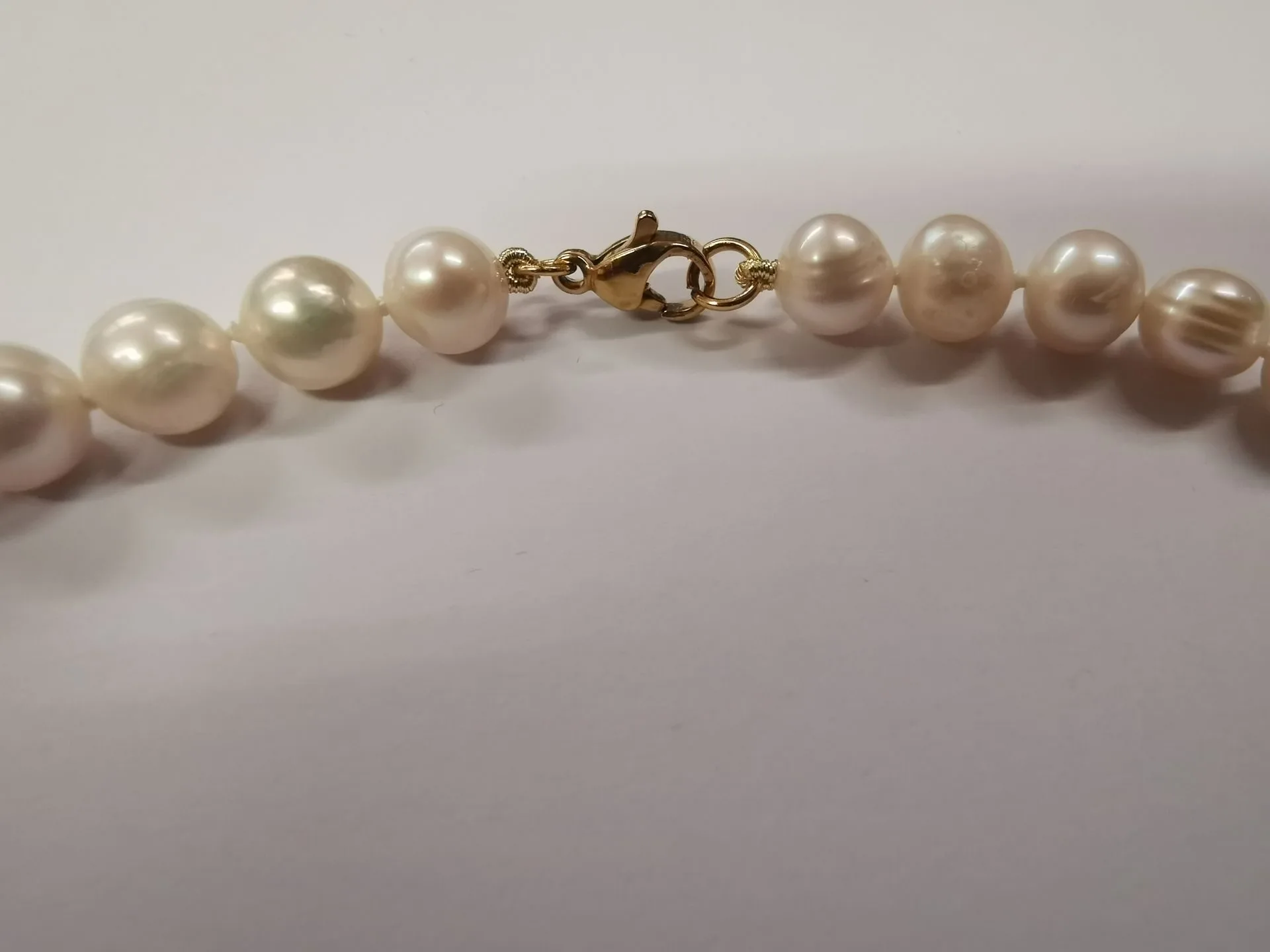 Ръчно изработеното колие от речни перли е нанизано на специален копринен конец, с възли между перлите. Тази технология предотвратява търкането на перлите една в друга, съответно удължава живота на изделието.