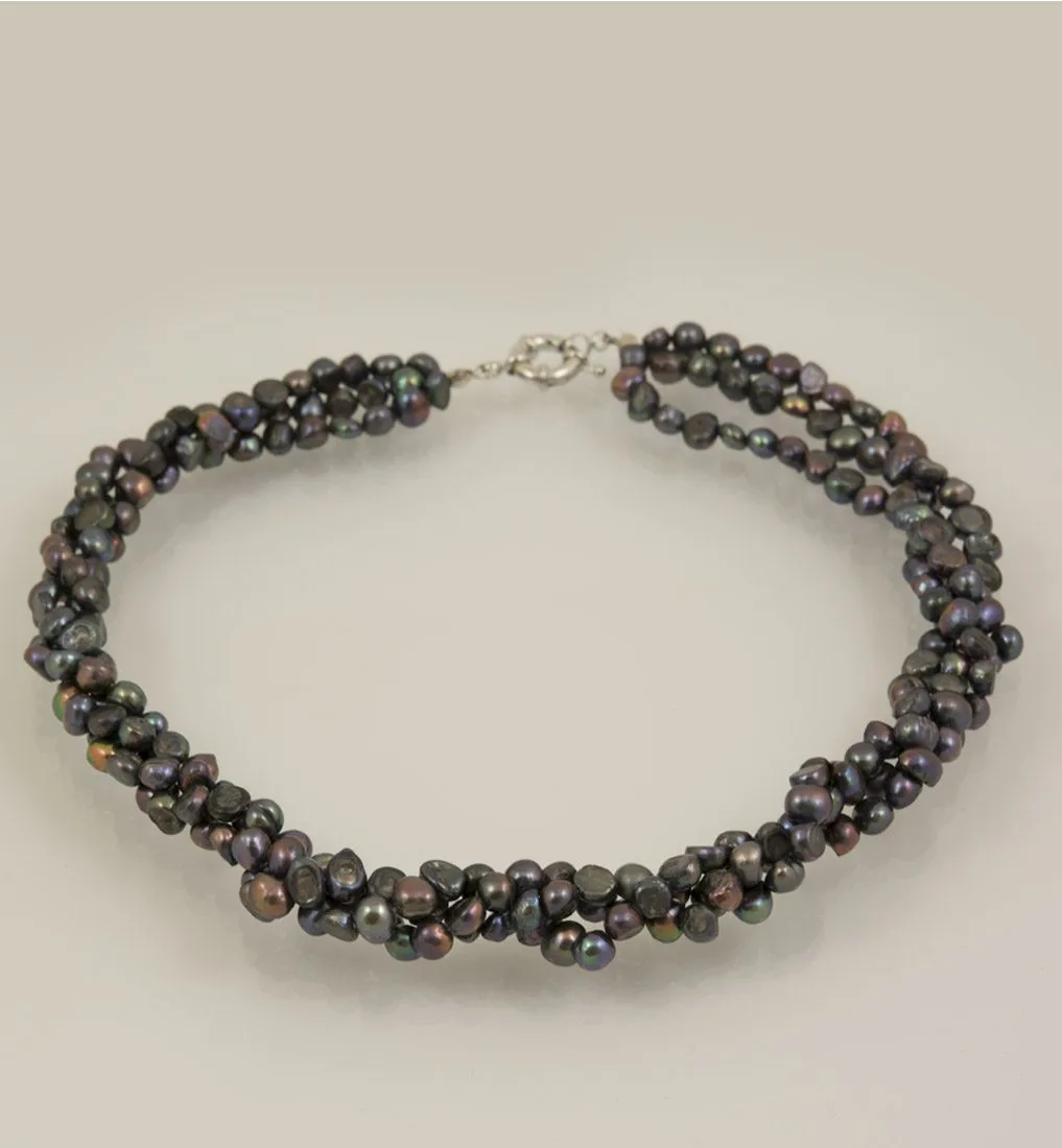 Красиво колие от три реда естествени култивирани речни перли за дамите.