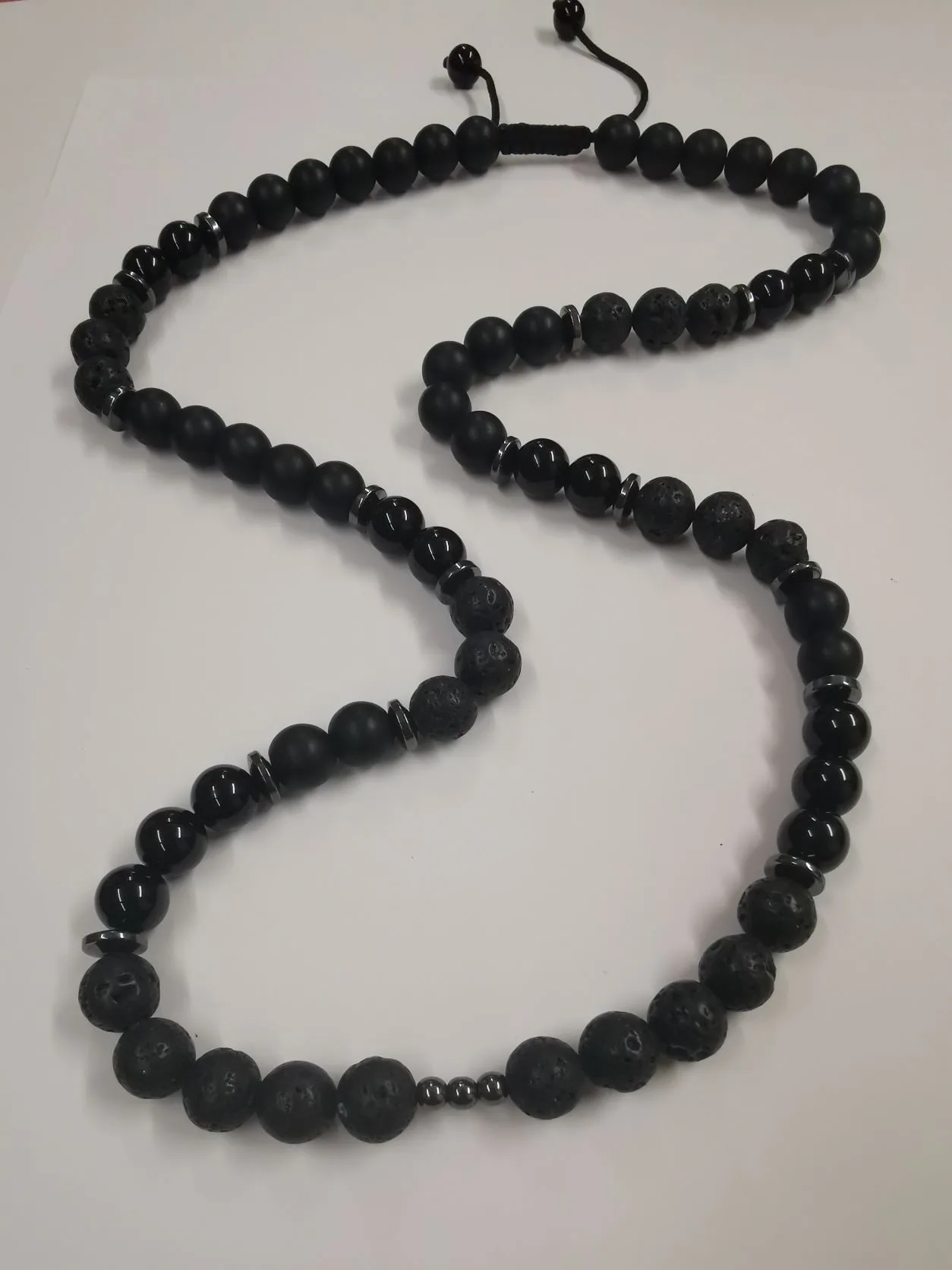 Мъжко колие с вулканична лава, полиран оникс и матиран оникс