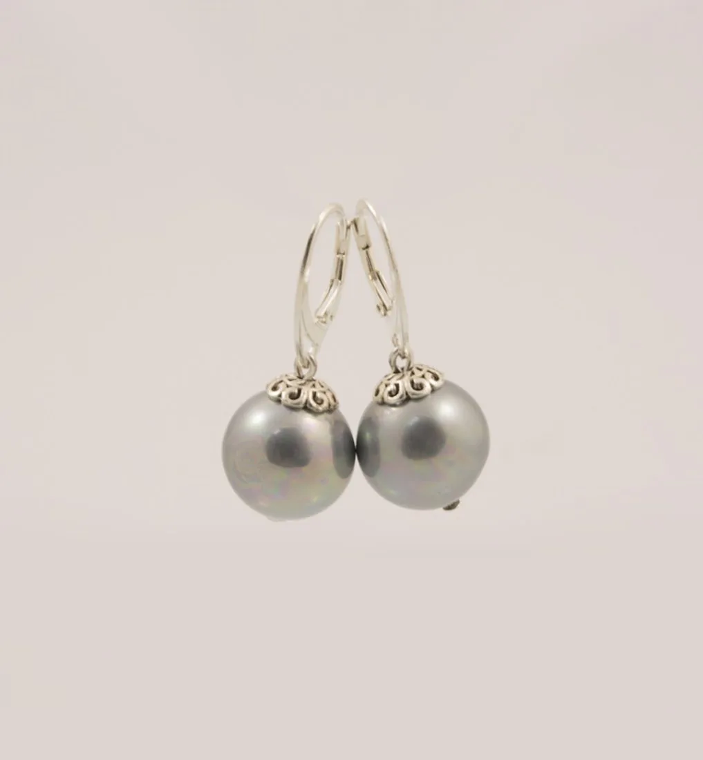 Красиви обеци от майорка перил -сиви със сребро 925 за дамите.